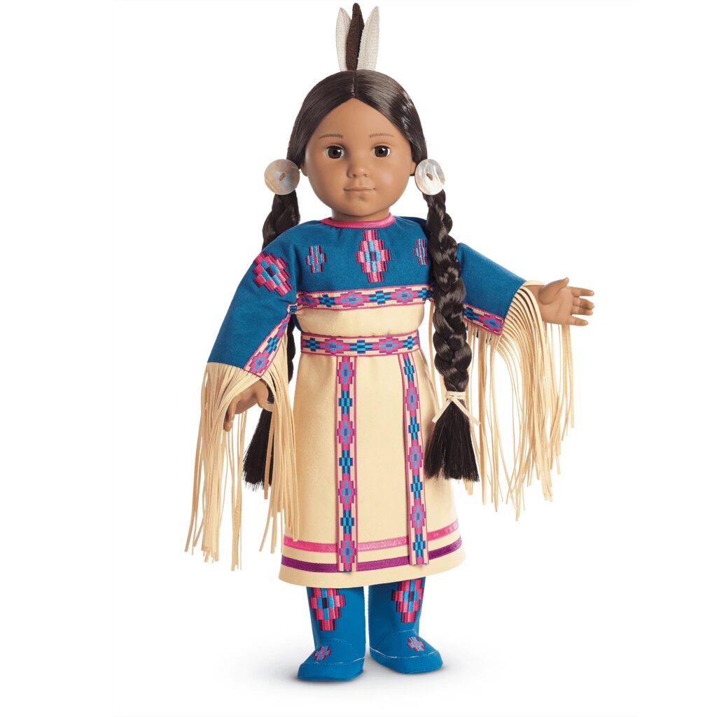 Kaya is situated at a crossroad of scholarship on dolls (American girls specifically, but scholarship on dolls more generally has been useful as well) and Native American representation. Dolls have long been viewed as an object through which multiple layers of femininity, appropriate gender roles, and socialization more generally are enacted. For the American Girl company, this is also a place to leverage stories of historical girlhood to sell dolls and outfits. The sometimes competing and sometimes complementary goals of consumerism and education define the American Girl company. Positioning themselves as an alternative to Barbie, the stories emphasize often contrary stories about rebelling in individual ways against traditional feminine gender roles while ultimately returning to a style of play in which feminine values like dress-up, nurturing, and hair care are big themes. Kaya’s collection stands apart from many of the themes which dominate other collections. Most dolls have various dresses and tie-in accessories, and many focus on the bedroom or kitchen. Kaya’s collection has only one dress directly related to her stories (her “trading” outfit), and the others are recreations of modern-day jingle dresses, which reflect current Native American fashions.