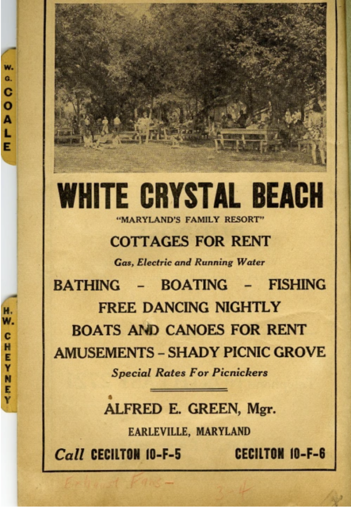 Another Cecil County Vacation Spot – White Crystal Beach – Window on Cecil County’s Past. (2008, September 1). Cecil County History. Retrieved March 19, 2024, from https://cecilcountyhistory.com/another-cecil-county-vacation-spot-white-crystal-beach/