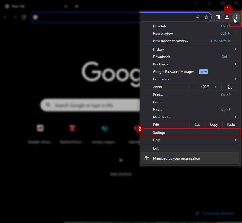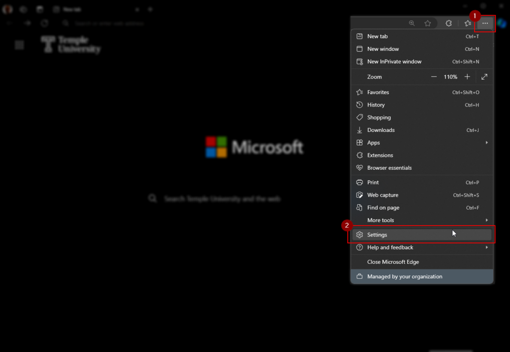 1. Click the horizontal ellipses menu in the top right corner of the browser