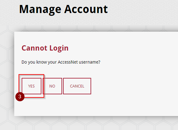 1. Select “Yes” under the question that reads “Do you know your AccessNet username?”