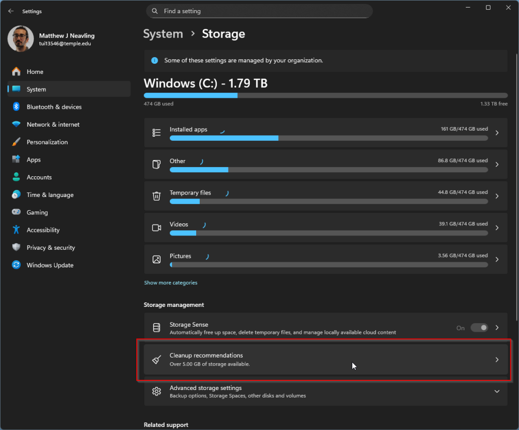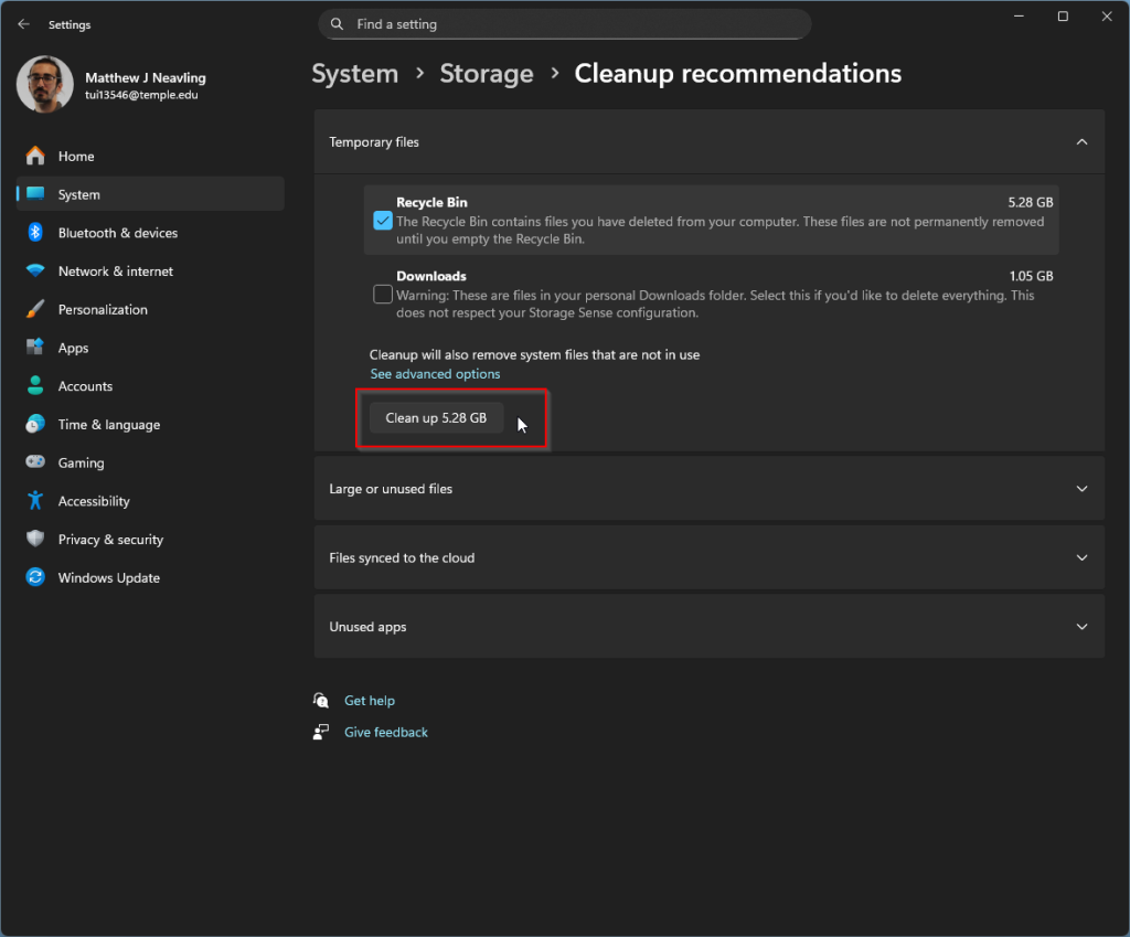 - Click “Cleanup recommendations”