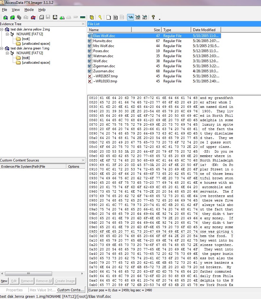FTK Imager displaying information from disk images of two 3.5” floppy disks.