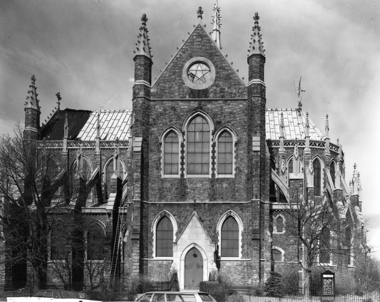 The George W. South Memorial Church of the Advocate was built between 1887 and 1897, honoring a Philadelphia merchant and civic leader. Noted church architect Charles M. Burns (1838-1922) designed the impressive structure in the Gothic Revival style, adorned with intricate stone carvings, flying buttresses, and striking stained glass windows. The church compound located at 18th and Diamond Streets in North Philadelphia included a chapel, parish house, clergy residence and baptistery.
