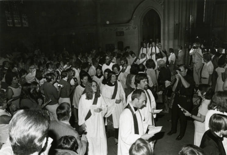 In support of women’s rights, the Church of the Advocate hosted the ordination of the first eleven women deacons into the Episcopal Church priesthood on July 29, 1974. Episcopalian leadership mounted a challenge to the legitimacy of the ordination which ultimately failed under worldwide public scrutiny and mounting pressure from women’s advocacy groups. The ordination of women priests was approved at the denomination’s General Convention in 1976. Barbara Harris who served as a senior warden at the Church of the Advocate during that historic service would eventually become the first woman consecrated as a bishop in the Anglican Communion in 1989