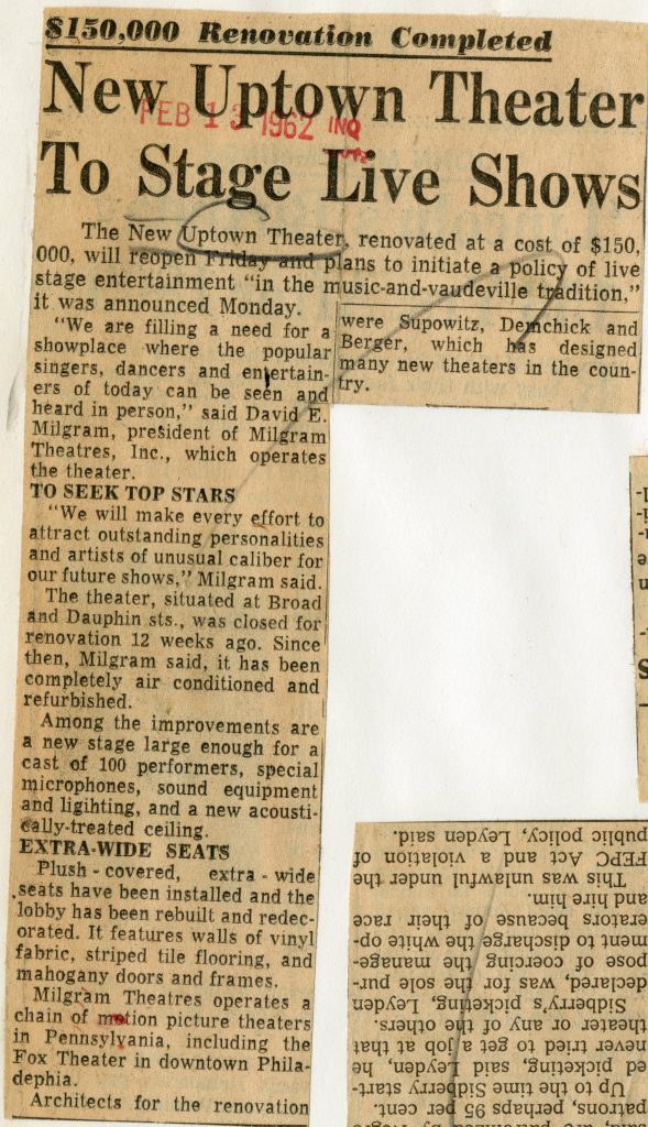 Exterior of Uptown Theater, April 7, 1972, Philadelphia Daily News, Sam Psoras, Photographer