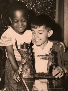 Nathanial McDaniel (left) and Chris Cherubini (right) play with mechanical bank at Cayuga Federal Savings and Loan Association, 11th and Market Streets Branch, 1964Perelman initially used his Merion, Pa., home to display his antique toys, erecting an addition in 1962 to accommodate his growing collection and offer public museum hours. In a 1967 agreement with the Philadelphia Redevelopment Authority, Perelman purchased the historic Abercrombie House near the corner of 2nd and Spruce Streets to create a new museum space. The four-story brick house, named for Royal Navy officer Captain James Abercrombie who purchased the site in 1758 and built the home shortly thereafter, was considered one of the largest Colonial- era homes in the city. The Philadelphia Historical Commission designated the property to the Philadelphia Register of Historic Places in 1957. Perelman’s restoration of the building was part and parcel of the mid-twentieth century urban renewal taking place in Society Hill and other neighborhoods throughout the city. Renovations took two years at a cost of $300,000, with John Frederick Lloyd serving as the architect. The new Perelman Antique Toy Museum celebrated its grand opening in January 1969 with the Director of the United States Mint Eva Adams and Mayor of Philadelphia James H. J. Tate in attendance.