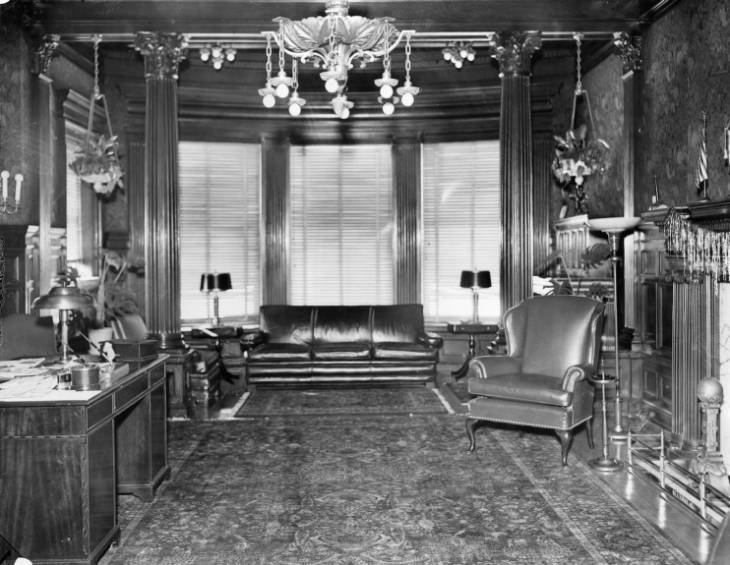 “The living room of the home of the late Alfred E. Burk at Broad and Jefferson sts. now is the office of a union’s president.” December 29, 1945, Evening Bulletin photograph
