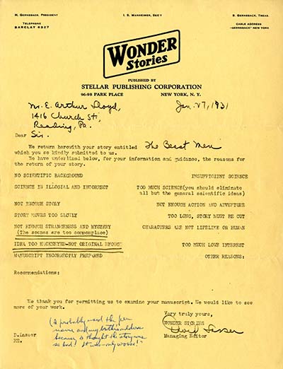 Recently, a reference request came in through the Special Collections Research Center general email, asking for information about three of our science fiction manuscript collections: the Stanley G. Weinbaum Papers, the Lloyd Arthur Eshbach Papers and Fantasy Press Archives, and the Arthur Leo Zagat Manuscripts. While the Weinbaum papers already had a finding aid on our web site, it needed revision. The Eshbach and Zagat collections had finding aids in electronic format, but they had not yet made it onto our web site.