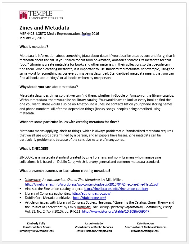 Using this same teaching approach the Special Collections Research Center (SCRC) hosted a class session in our reading room. This was the last of the seven PBL-based assignments for the semester. Students were encouraged to handle and engage with the materials pulled for the class and use these primary sources to address two historical questions: