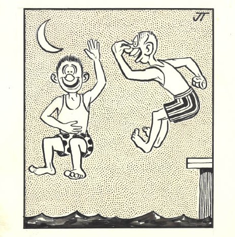 Jumping into the Delaware River, 9/23/1955, Newspaper Illustrations Collection