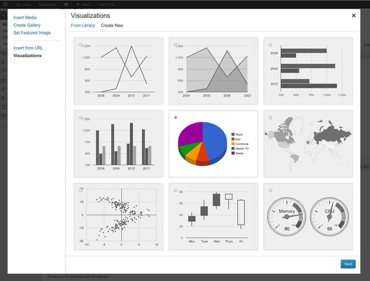 New menu, theme, and widget pages make customizing your site easier than ever.