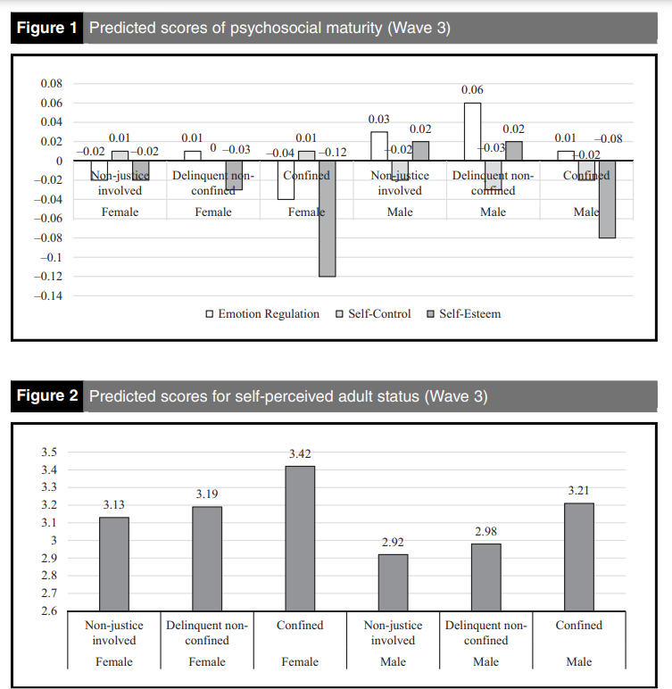 The authors Erickson and Shaefer conducted a study that analyzes whether adolescent correctional confinement affects psychosocial development in early adulthood. Psychosocial development is labeled as the capacity of an individual to learn skills that are important for their development. They also expanded this by looking at decision making that includes impulse control, self-esteem/self-reliance, and perspective with the consideration of the implications of one’s actions on others. They did this study by comparing three groups of adolescents: youth who were arrested and confined, youth who were arrested and not confined, and non-justice youths. By using a group of non-justice youth, they can better evaluate how confinement estimates psychosocial development in young adulthood. In their study, they found that juvenile justice contact does negatively affect and interrupts psychosocial development during the transition to adulthood.