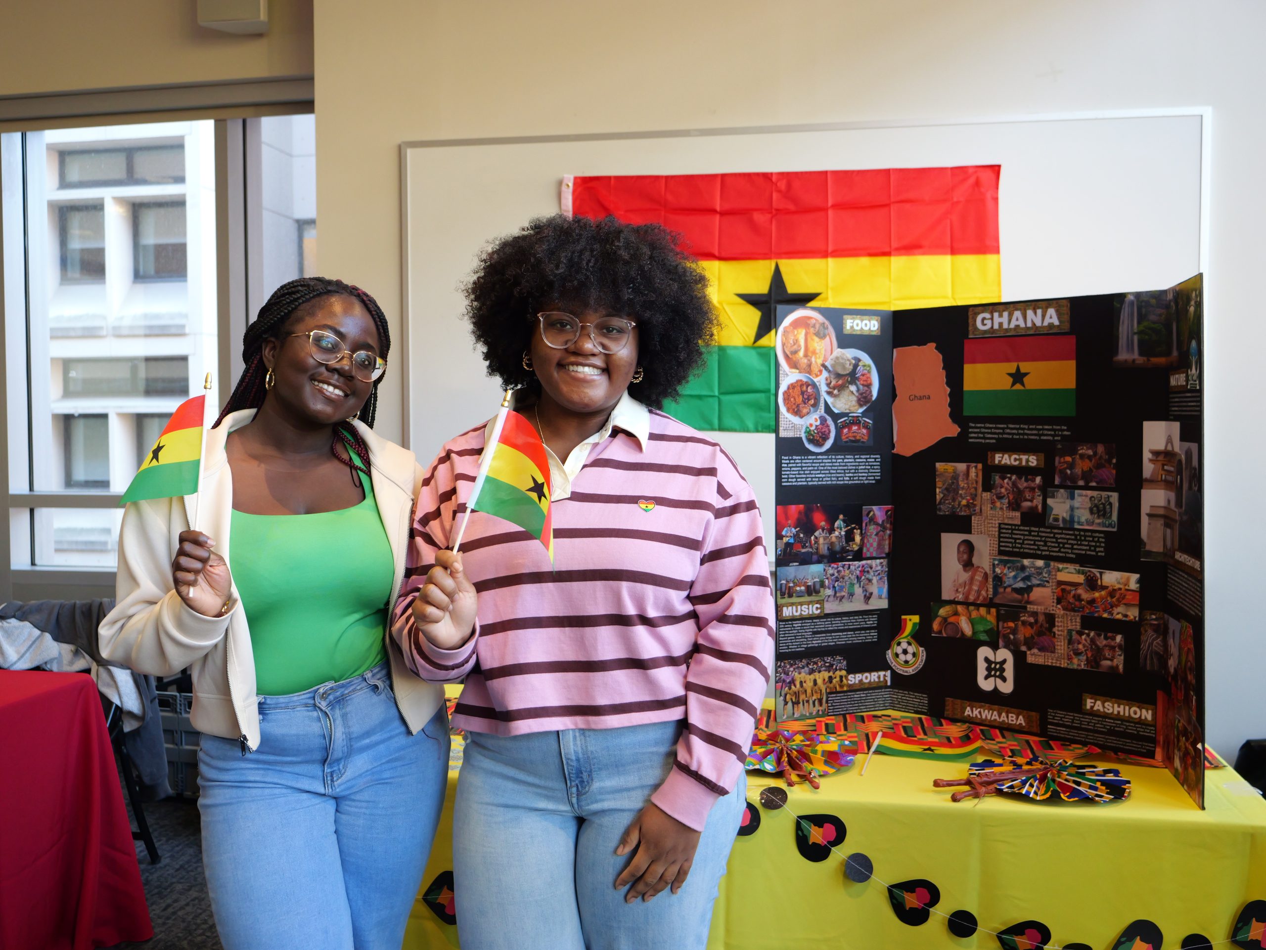 The day began with one of our regularly scheduled International Coffee Hours, this time with a focus on Ghana. Attendees experienced the beauty of West African culture through a traditional dance performance, delicious Ghanian food, Kente cloth displays, an introduction to local languages and a presentation. Some Temple students from Ghana supported International Student Affairs in preparing this event.