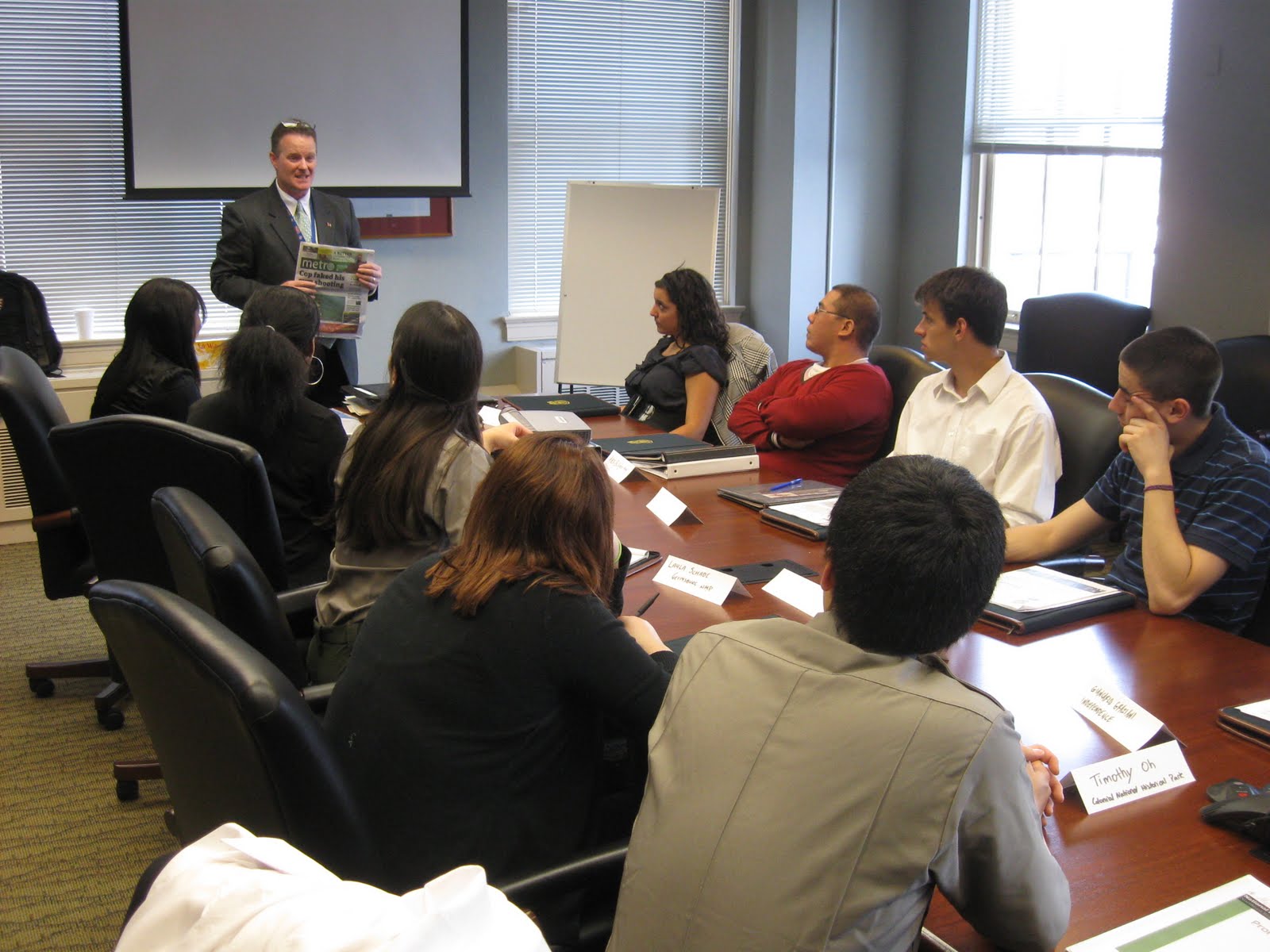 Chief of Operations Paula Risell discusses the operations in Independence National Historical Park to Melissa Burch and Giancarlo Graziani where both students will intern beginning this May.