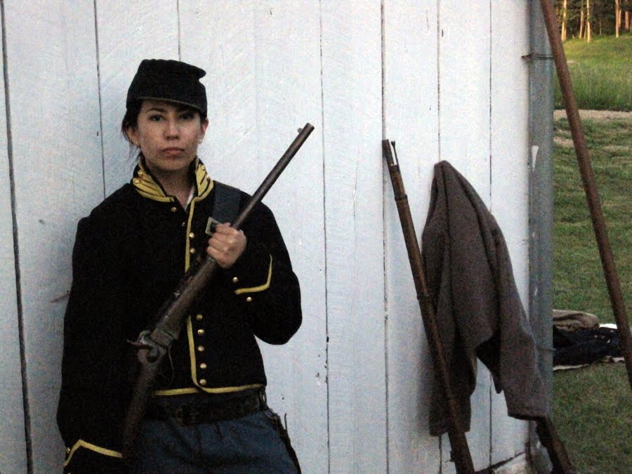 For the march, I wore a Union cavalryman’s uniform (hence the golden piping on the jacket). I was armed with a Sharps Carbine rifle – which is a highly accurate breech-loading firearm. Compare this to the weapon I fired earlier in the day, or the ones propped up beside me, which are muzzle-loaders that require ramrods to load.