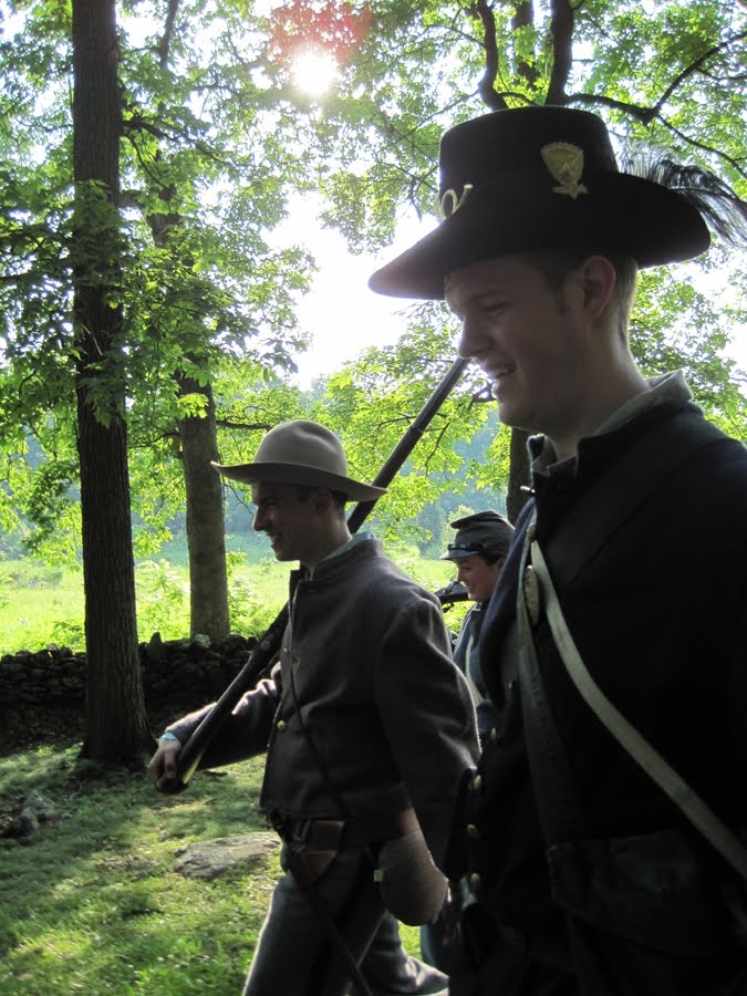 It was nearly 90 degrees out, and it didn’t take long for the rifles and gear we were loaded with to start feeling extremely heavy, especially as we made our way up steep hills. Comparatively speaking, however, we had little to complain about other than the heat. Our gear was much lighter than a typical Civil War soldier’s, and our march was not only mercifully short, but ended in a BBQ picnic. So we had neither the anxiety of being ambushed, nor the need to forage for provisions that would have been typical for a soldier during a long campaign.