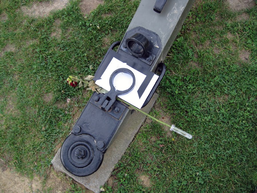 Today, Ranger Ryan Levins (my supervisor) and I were on patrol in the park and made our way to The Angle – which is one of the more heavily visited areas of the park. Leaving our vehicle and making our way on foot towards the monument memorializing the place where General Armistad fell, we spotted a weathered rose (the area has been victim to a number of thunderstorms lately) and a similarly worn, hand-made card attached to one of the Union cannons. Visitors leaving flowers and gifts at memorial statues is fairly common from what I’ve seen, but this one in particular stood out to me.
