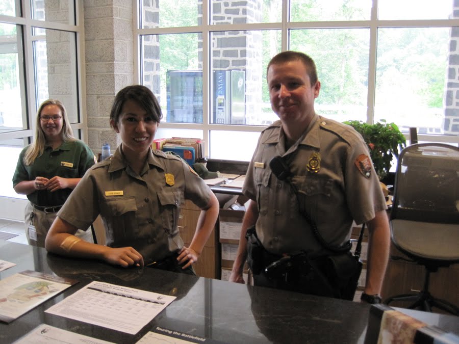 Allison, me and Ryan at the visitor center here at Gettysburg, ready to answer questions. Picture only tangentially related to the post below.