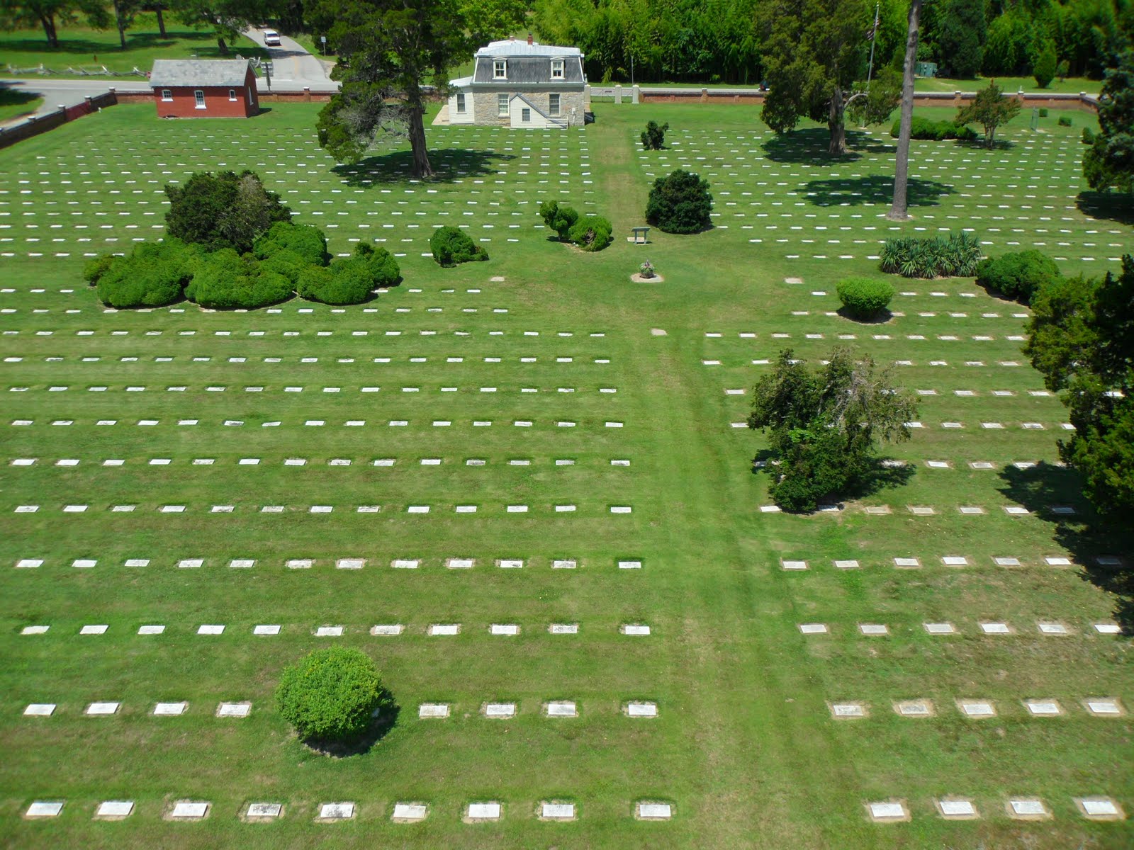 Thanks to Bill, our grounds/trails keeper, I was able to go 70 feet up in a bucket truck to take a picture of our national cemetery.