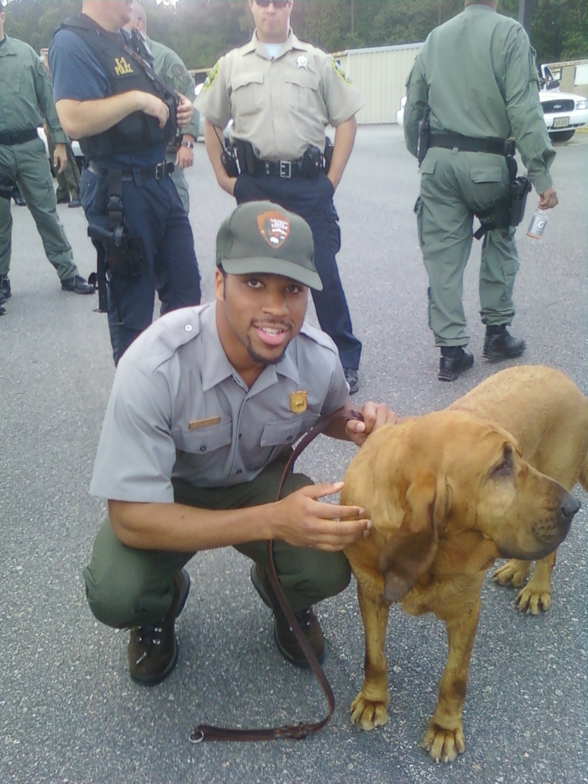 This prompted the rangers of Colonial, and also other law enforcement officers from the surrounding area such as, York County Police, Sheriff’s Dept, Newport News Park Rangers, and assistance by the K-9 Squad. I had the chance to witness a debriefing and plan of action taken by all these agencies together in the maintenance portion of the park. The communication by these agencies in the working together to achieve a common goal was a phenomenal thing for me to see, because one can often hear of how ineffective communication in times of crisis can occur and make matters worse. However, it also made me have the thought process of that, “If you break the law, we will hunt you down and find you”, and surely later on that night the two individuals were back into custody. It was a very fun introduction into law enforcement in the park. This week I’ve been doing interpretation at the Visitor’s Center, and have had the chance to attend various tours, as well as visit many sites in order to increase my park knowledge concerning the events that Colonial signifies. I look forward to a fun summer, and wish all of my prorangers the same!!