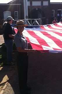 The picture to the left is a picture of the daily flag change at the star fort. There was a class there all the way from Montana. It was fun interacting with everyone and hearing one of the rangers tell the history about the flag and Fort McHenry to the children. The people I work with here are so nice. I have so much more to learn and experience here at Fort McHenry and I am super excited to see what the rest of the summer has to hold!