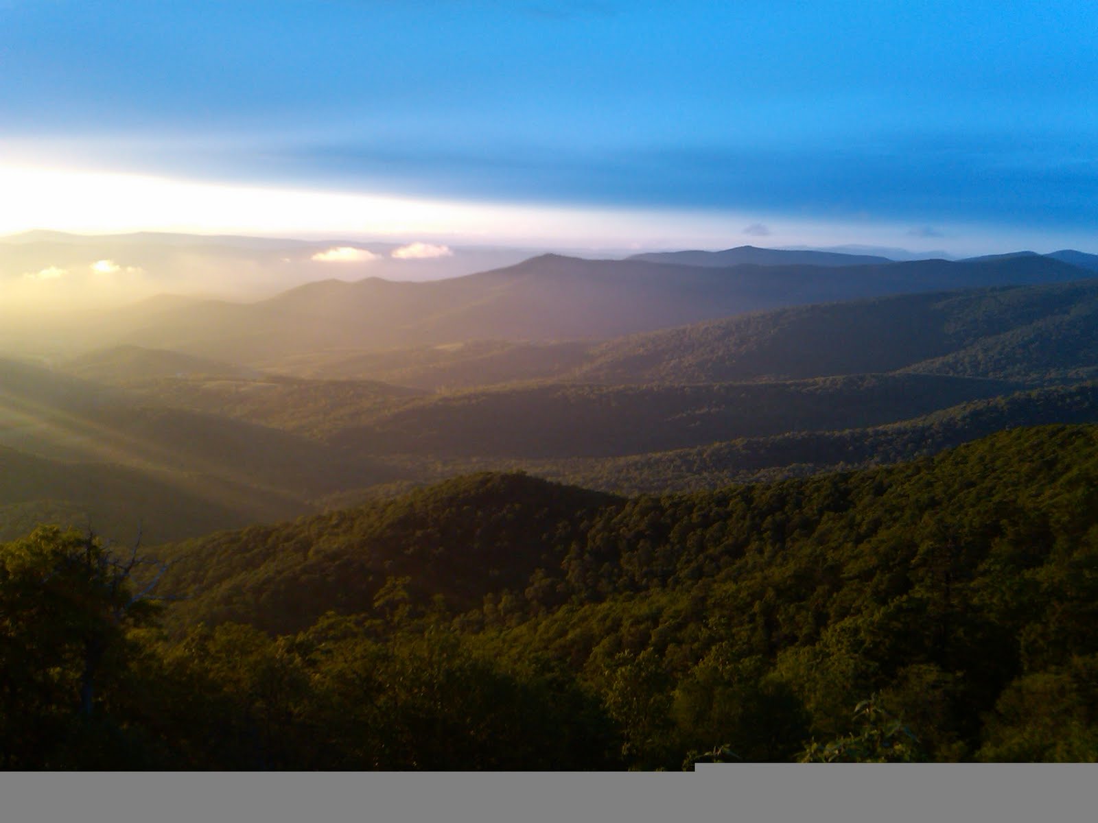 Hello and greetings to everyone! The picture to the right above the text is just another breath taking vista that are up and down Skyline Drive.. Heather and i were lucky enough to see this as we were driving back to the HQ after a 12 to 8 shift.