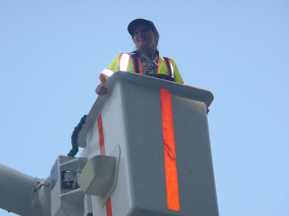This past Monday and Tuesday Tia and I worked with the Roads Crew. The Fourth of July is a huge event at the Parkway and requires a lot of work beforehand. Maintenence has to put up miles and miles of fencing to prevent cars from parking along the side of the Parkway, so we helped put up this fencing. We first put a stake in the ground every five feet or so by using a Man Killer, which made my arms very sore. We then attached the plastic fencing with zip ties. It was hard work, but I enjoyed talking and joking with the Roads Crew.