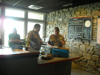The knowledge that was shared during those tours really stuck with Jim and I. We found that by the end of the week we were able to answer a multitude of questions and that we had more confidence working behind the Visitor Center’s counter. Also during our time at Interp we were able to help set up an exhibit featuring Abraham Lincoln. It was nice to see the behind the scenes version of what must go on to set up an exhibit. This was a really good introduction for us to a museum-like feel. Throughout our time at Interp, we were constantly reminded how each division must interact. Although we are planning on going into Law Enforcement, the LE Officers must have knowl