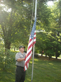 Saturday was the Salute to Independence Event at the battlefield. Jim and I worked the later of the two shifts, 1530-2400. We were in charge of checking parking passes and directing people to where they