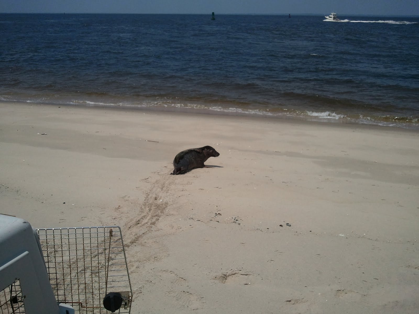 We also got the opportunity to release harp seals into the ocean. The seals had to been rehabilitated from injuries they had sustained and were deemed able to be released back into the wild. They are released at sandy hook because it is the most northern tip of Jersey beaches. After being released the seals greeted each other which we were told is a good sign and could possibly mean that they are going to migrate with one another to the north where they spend their summers until they travel south again. It was really awesome to see the seals back in the ocean and swimming around.