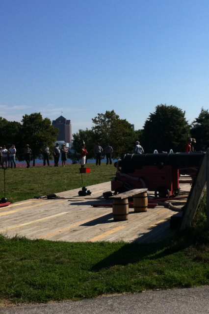 The new superintendent started off with a bang! Today, Aug 10th, 2011, we gave the new superintendent, Tina Orcutt, a warm welcome to Fort Mchenry. She introduced herself, told the staff about her history in with the park service, and what we are to expect from her. After the introductions, all the staff followed the new superintendent and the chief of interpretation up to the Water Battery to complete the inaugural process with a bang! The staff had the honor of watching the superintendent shoot off one of the cannons to start her career here at Fort Mchenry!