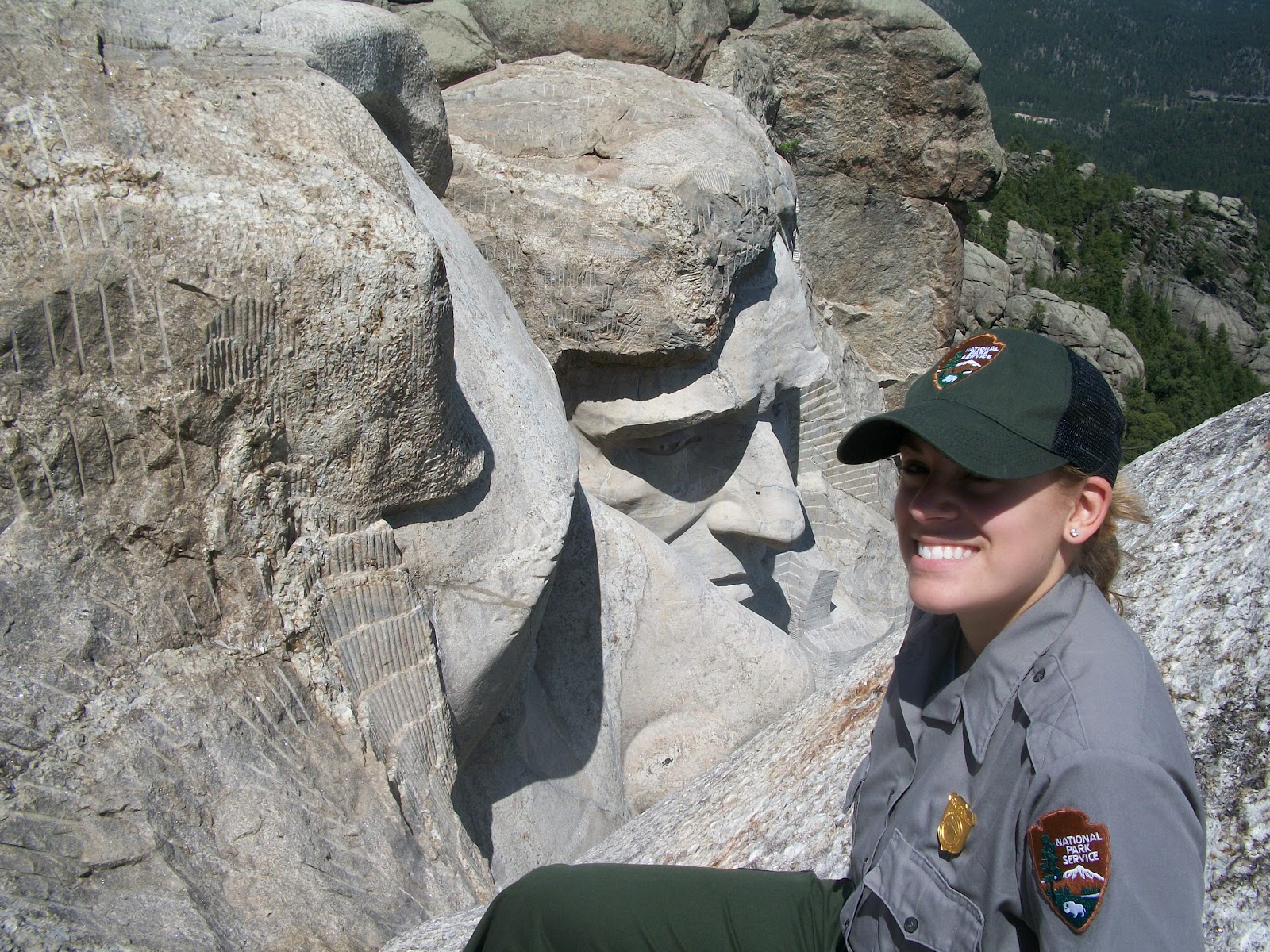 Later that day, I was asked to join Ranger Dave Woodcock in hiking up the side of the Memorial to check on a few of their security measures. The hike up was rather strenuous but very enjoyable, and once we reached the top we were rewarded with the incredible view! I was also able to see the location where the Hall of Records was supposed to be; an interesting view into the past. We then had to cross part of the rock to continue on our path; we were literally rock climbing next to or above the heads of the Memorial! We then made our way down into a location known as Indian Camp to continue down the mountain. The views I was able to see on this hike were absolutely breath taking.