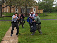 The third day was by far the most interesting and exciting day of them all. The rangers participated in role playing scenarios using simunitions, which are paintball rounds that are fired through police service weapons to help simulate realistic scenarios. Although we were not allowed to participate we helped load the rounds in the magazines and watched from a close but safe distance. There were four different scenarios that forced the rangers to initiate different tactics to control a scene. The most interesting part was watching how the Rangers all had used different methods and tactics to get the same end result…suspect in custody. It was also funny to observe the rangers in their suspect roles; they really got into it..some maybe Oscar worthy?