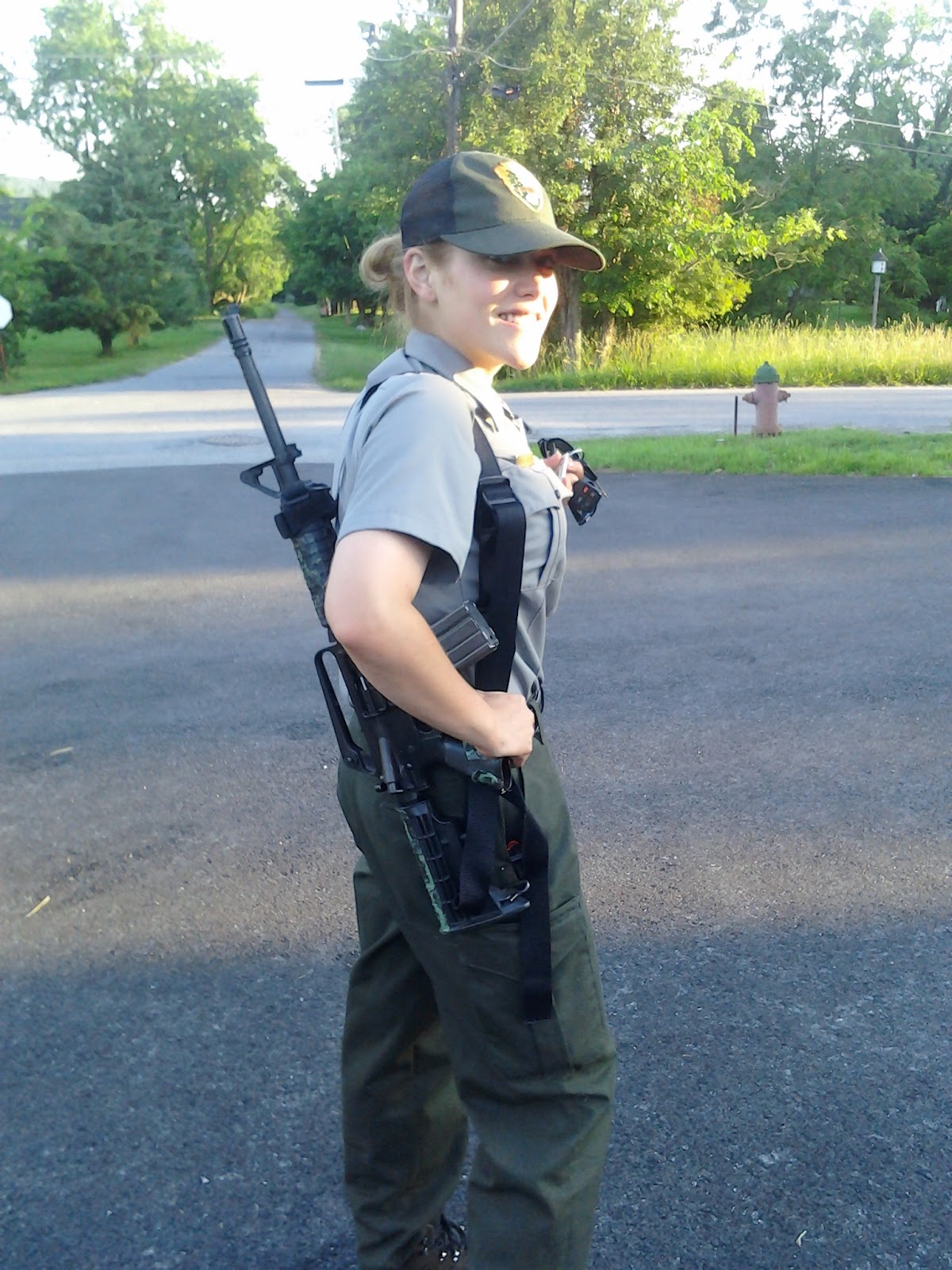 Saturday I (Renee) finished my S-130, which I am excited to receive my red card soon so I am able to fight forest fires when the time comes. Park Ranger Melissa Boyce got a call from central about a domestic dispute at a popular party site called “Party Rock”. It was interesting to see about five different police units from different districts come on scene. The reason for this is because there are many different jurisdiction lines between Maryland, Virginia and West Virginia. Since the actual incident happened on the rock by the river it became DNR, Maryland’s case. After that incident I (Renee) got to also shadow a Harpers Ferry Police Officer (Jeremy Burkholder). He showed me how to use the radar to check for speeders. While on vehicle patrol, Jeremy got a call about an accident that happened on the “mountain” and we quickly went in route to the scene. There was a truck smashed on the side of the road. The man driving the truck was under the influence of alcohol. This man is also a repeated offender. It was great to be able to experience and shadow the Police Officer to see exactly what their day is like protecting the town of Harpers Ferry.