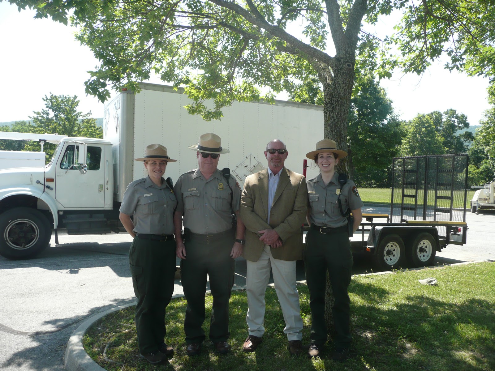 NCR Regional Chief Ranger, Will Reynolds came to visit us at Harpers Ferry today. We had the oppurtunity to give him a condition report and let him know all the exciting experiences and training we had to endure so far. We were helping Supervisor Mark Howard conduct a driving training for two volunteers and we were able to demostrate to Reynolds and the volunteers how to safely and accurately drive through the course. Cheif Ranger of Harpers Ferry, Jeff Woods, was able to be present at the time.