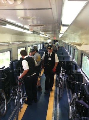 I got the chance to participate on the Bike Aboard program offered by the Railroad. The Railroad is in partnership with CUVA. The Bike aboard program is a unique program that allows park visitors to commute up and down the valley with their bikes and the train. They have a special bike car that holds a ton of bikes while the visitors sit aboard the train and enjoy the valleys scenery. Each stop the visitors are allowed to get off and continue their biking. After we got off the train we biked to Boston store (Visitor Center) to end the day with a division meeting. At the meeting the division n chiefs introduced their self’s to me and told myself and the others what kind of projects they were working on so everyone would be on the same page. After that awards were given out to Law enforcement officers for all of their years spent working at the National Parks Service.