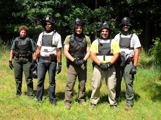 During this week I went to the Gun Range and learned about shooting with a flashlight in low light scenarios. The coolest parts of the Active shooting at the gun range was getting the opportunities to both shoot a 9mm for the first time and to go behind the glass and help coordinate some of the fire arms qualifying targets. I finished the week by conducting search and rescue scenarios in large fields and in the woods then using non lethal fire arms paint ball like to find our suspects.
