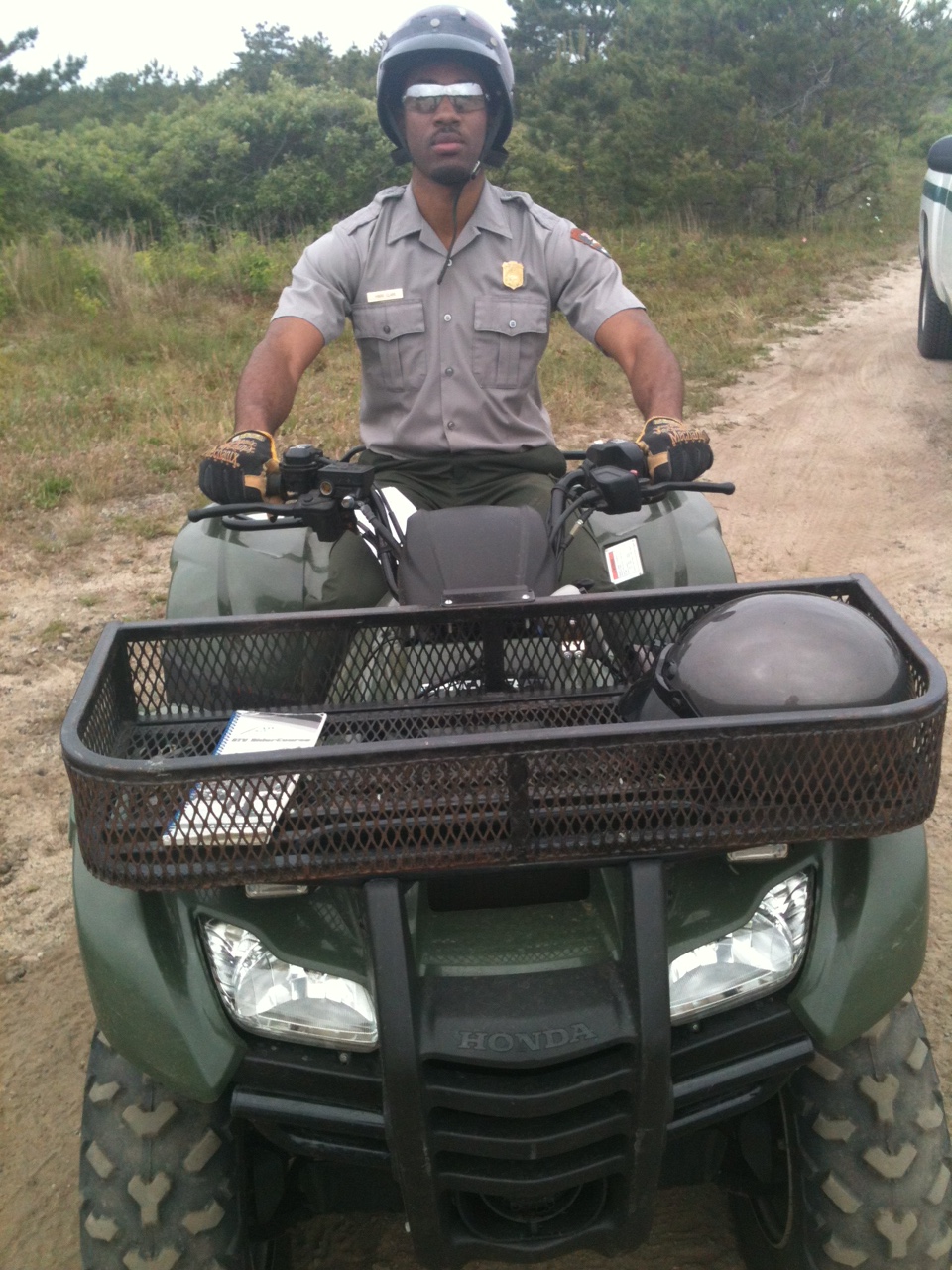 As if week five was not fun enough, Week 6 began with a momentous bang! We traveled up to Cape Cod, and worked there for 3 days. Our first day at Cape Cod National Seashore consisted of Mark and I taking part in a ATV training course. This course was a rigorous one, where we learned the ins and outs of ATV protocols for before, maneuvering the ATV backwards and forwards in tight turns, shifting through gears properly to get up hills, and also proper seating and leaning on the ATV. Our second day we worked with Natural Resources in helping to identify nests for the endangered “piping plover”, and rode along with law-enforcement rangers. On our final day we took part in visiting the North and South District Visitors Center, took part in the Seasonal Training exercise for workers in Interpretation, walked a small 1 mile trail behind the South visitor center before heading back to Boston. We worked a night shift the following day, assisting in alarming buildings with the rangers, and more shadowing. Our week ended with a trip to Lowell National Historical Park, known for its Textile Industry. In Lowell we shadowed law-enforcement, set-up barricades for the Summer Music Series Concert, and took part in crowd control during the beginning of the concert before departing.