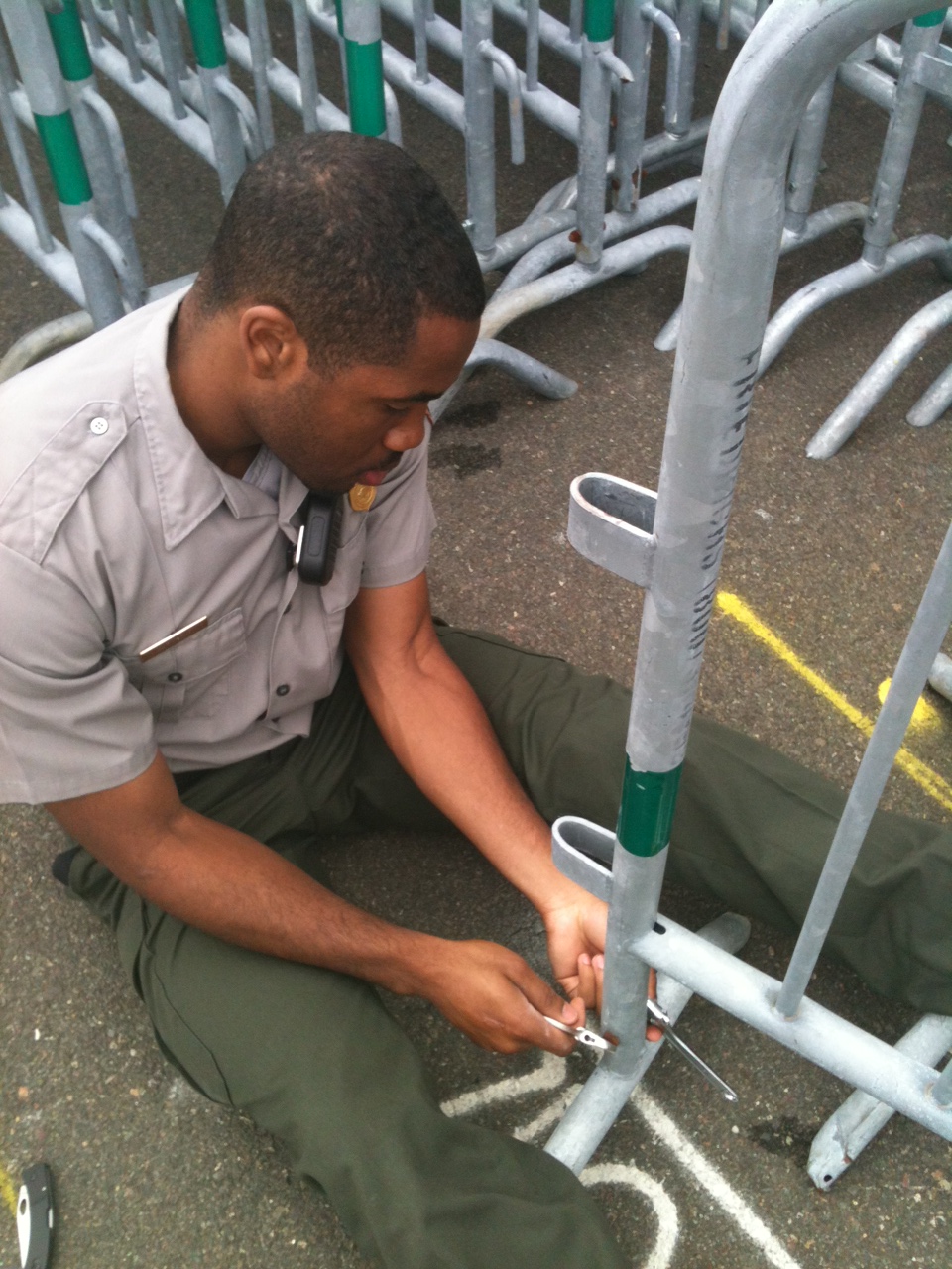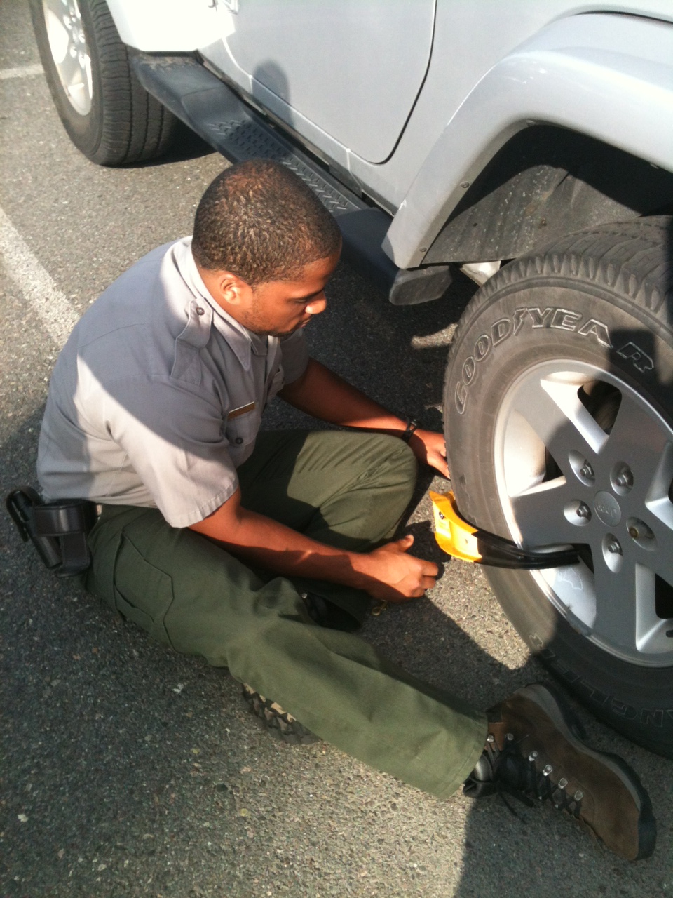And then there was week 7. During week 7 we worked with the law-enforcement day shift, helping to fix barricades and place barricades for the upcoming Harborfest celebration. In addition to these tasks we were given a presentation on “Use of Force” by our supervisor, informing us on the proper ways to use force, and the supporting Supreme Court cases and laws governing the use of force. After we then did a cover and concealment course set-up by our Supervisor, for us to move from cover to cover and hit can targets with Air soft guns. Later in the week, we did mock vehicle stops by the side of the law enforcement office, where our supervisor taught us calling in vehicles, how to approach the vehicle, and handling whatever the situation may be when making the contact of the vehicle operator. After this introduction, our supervisor created scenarios placing one of us in the unmarked car in front of us, and the other in the patrol vehicle, and we proceeded to do the different scenarios while being critiqued on our actions by our supervisory ranger. And now before this blog ends, there is just one more thing… the pictures from week seven!
