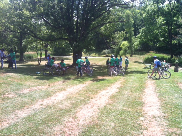 The next day, Monday I shadowed Park Ranger Phil also known to his students as Dr. Phil this day me, him and camp counselor Adrian went to North high school, in Akron to helped a group of teenagers identify Lid tools that could better their school. We talked about lid tools already there and water runoff. This day was very informative for me because I have no educational background on tools like rain gardens or rain barrels which can be used to help benefit our environments when it rains. We gathered data with the teenagers and met them back at Cuyahoga Valley in the Environmental Education Center. At the EEC we at lunch and then played team building games. Tuesday was my day off but I came into work for a few hours to assist with the Hike and bike program offered to the same group of teenagers.