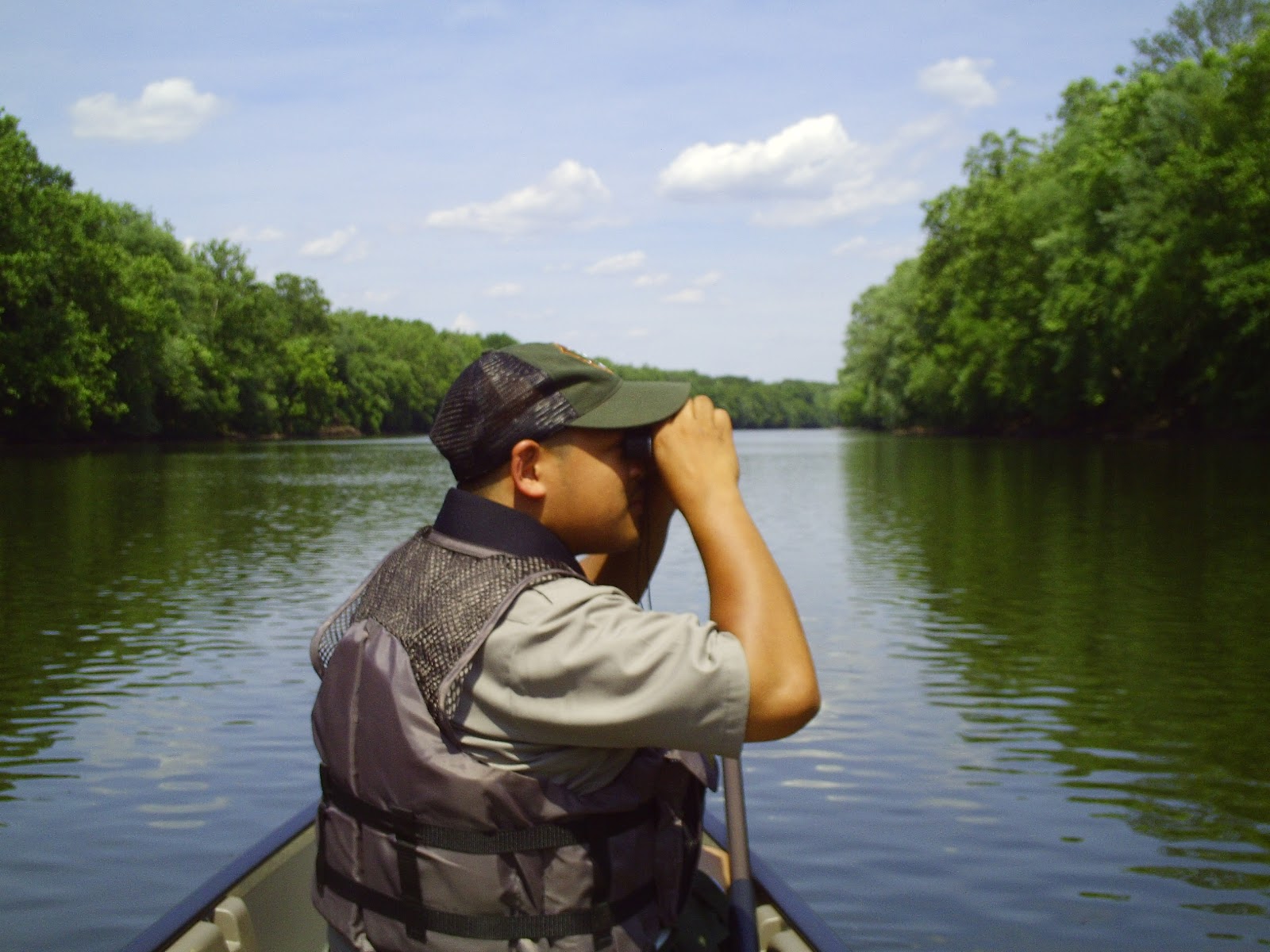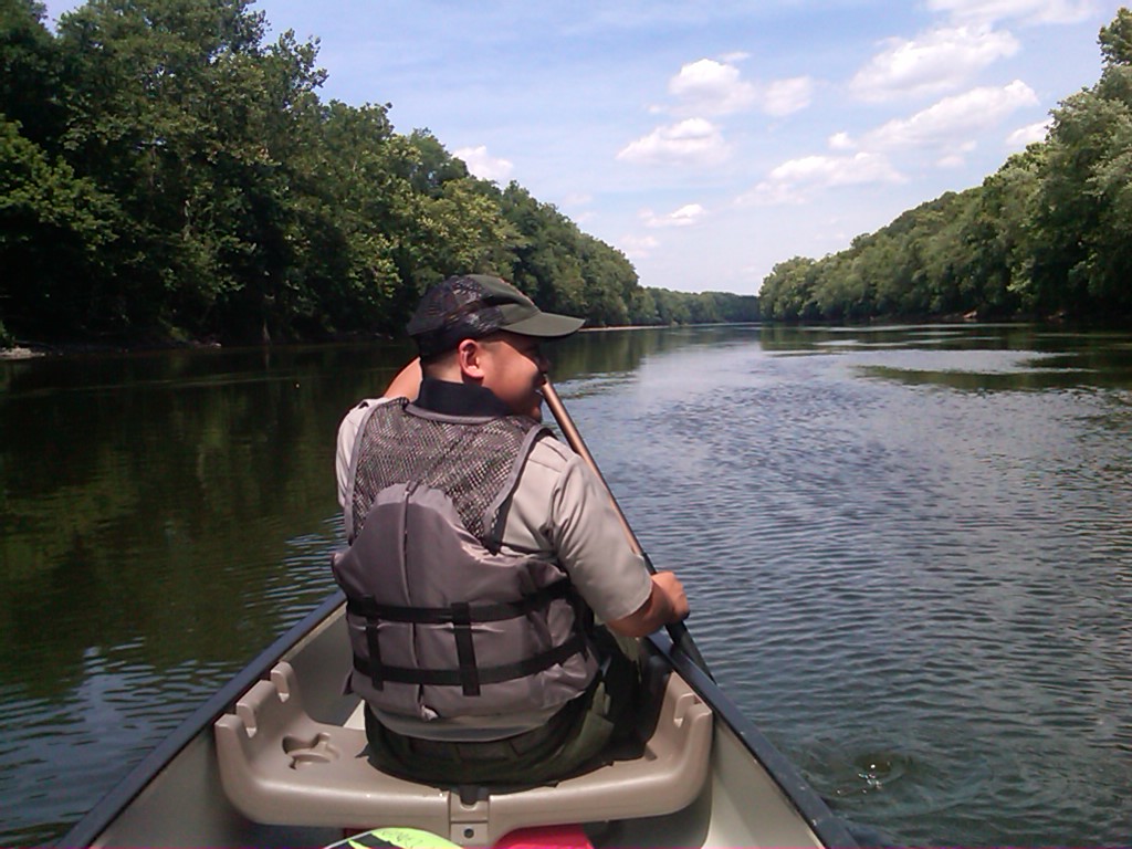 Hello again everyone. Hope all is going well! This was a short week for here at VaFo as we were given off for the Fourth of July which fell in the middle of the work week. It was also very hot out here being at a higher elevation that some places.However, we finally got out onto the Skuylkill River to do some river patrols. To do this, we first had to be given a safety presentation and go over safety instructions with Safety Officer John Waterman and his safety intern. Basically, we were told how to properly get in and out of a canoe without it tipping. One person sits on either the port or starboard side (which ever end that is still partly on shore) while the other person steps into the canoe, or out, and uses 3 points of contact to make sure you stay steady and don’t tip the canoe over. Getting in and out is when you are most likely going to tip it. We also were given an overview of life vests, to bring an extra paddle, and how when someone in another canoe slams their paddle onto the water this means they are trying to get your attention and is important to notice that. After going over safety we were able to take the canoe out onto the river. The Skuylkill River separates the North Side of the park from the South Side and about 3 miles of it falls onto park territory. The water is very shallow in most parts to the point where it would be very easy to walk across the river to the other side. Some parts do get very deep but for the most part its shallow enough to see the bottom but the water is also very dirty and fisherman are not allowed to take out any fish they catch. It is a catch and release program. The river was once, years ago, dammed off and had to be filtered with a bunch of pipes because it was extremely contaminated with coal. While on the river we are looking to make sure everyone has a life vest, either worn or on the canoe/kayak/boat. We always bring an extra vest with us in case someone does not have one with them. We also are looking to make sure no one is drinking alcohol on the river, make sure no one is in trouble, and we also get a great view of the North and South side banks where some people like to pitch tents illegally. There is also Cat Fish Island that we canoe to and inspect. Visitors are allowed on the island but without actually being on it, it is very difficult to see what anyone is doing from both sides of the park. A couple kids a few years back were caught camping and having multiple different illicit drugs in their tent so it is always a good idea to get a good look at the island. However, with the extreme heat this week we barely saw anyone on the river save for a couple kayakers.