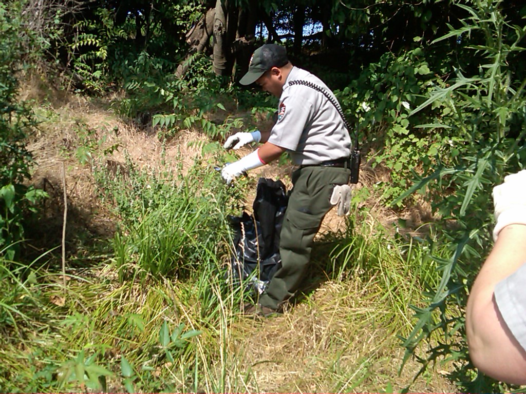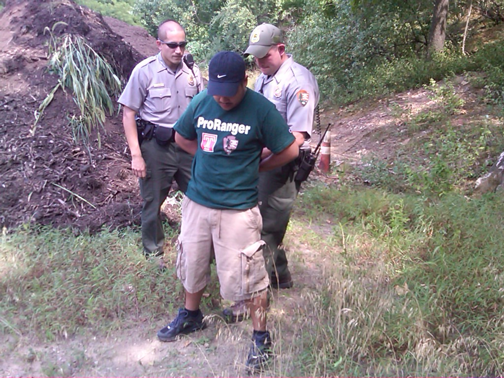 The next day we worked with the adjudicated juveniles from St. Gabriel’s Hall. We worked with resource management along with St. Gabriel’s Hall to help control the invasive plant species. We went to a section of the park to pull mile-a-minute weeds, cut vines, and remove non-native berry bushes and thistles. The teenagers from St. Gabe’s were very happy that they would be working with us because they knew that we were in a law enforcement program. Most of them were interested in the ProRanger program and wanted to know how we got in the program. They were all into the work we were doing and we managed to get a lot done that day. Many of the juveniles were from the city and during our breaks they were able to see some of the wildlife that they are not used to in the city. We saw hawks and a bunch of praying mantis. They asked a lot of questions about the plants and animals and we probably learned just as much as they did that day.