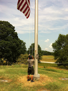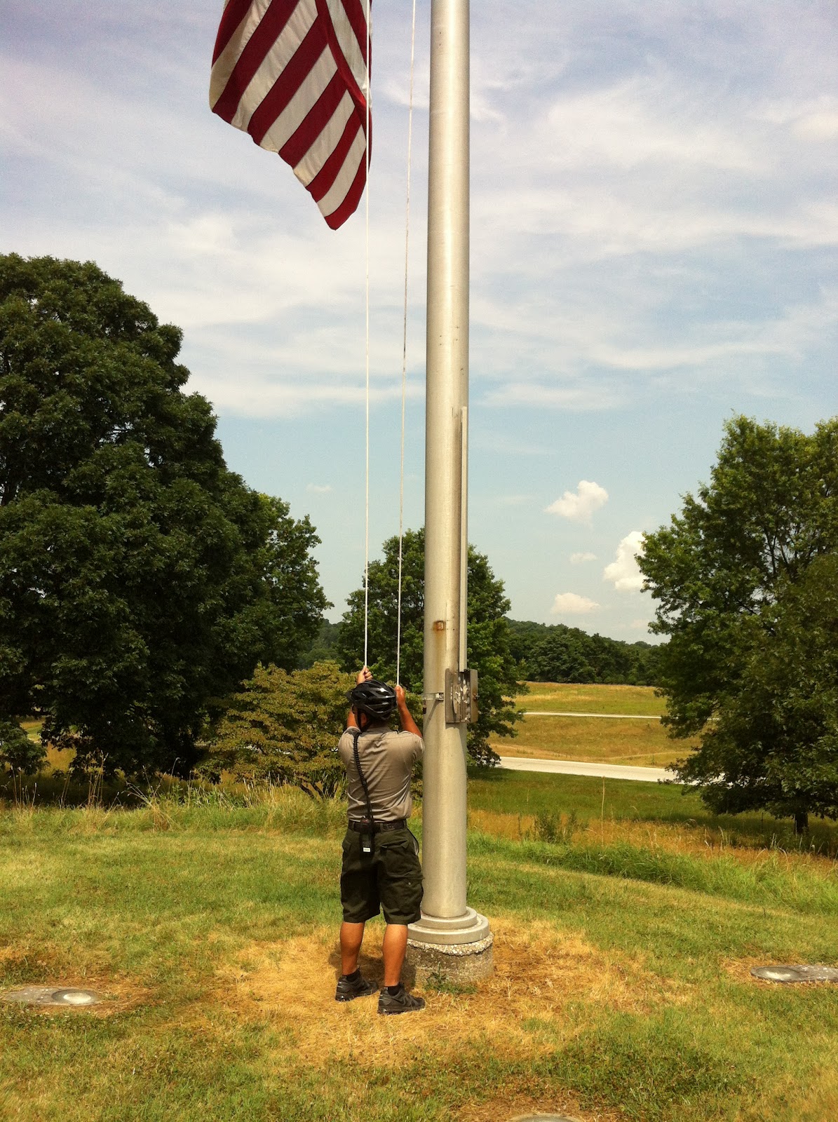 During bike patrol we noticed that one of our bigger flags was flying half staff while others were flying full staff. We called the chief ranger to ask why that one flag was flown half staff and what we should do with that flag or the other flag. He told us that it was only flown half staff the day before and that it shouldn’t be like that. So he gave us permission to correct that mistake.