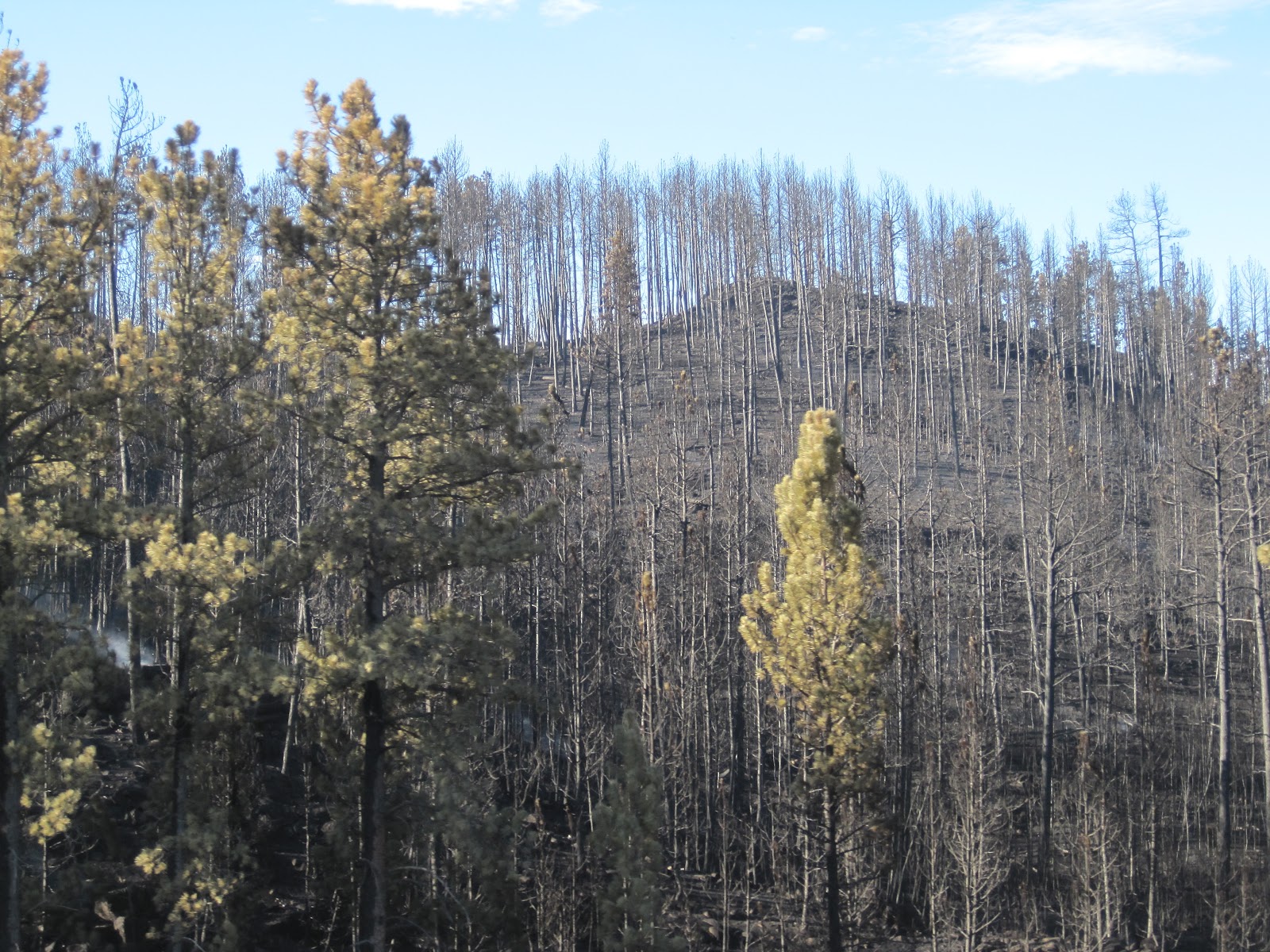 The next day Ranger Kimball and I did a back country patrol along the Southeast boundary of the park. Due to the lightning storm the night before the Forest Service notified us of two confirmed lightning strikes along the boundary of the park and asked if we could check to make sure no fires had started. Kimball and I were given a map of the Forest Service’s plotted strikes but we did not have exact coordinates. We were also unsure if the lightning had hit the ground directly or something else such as a tree. We used the GPS to follow the boundary line until we were in the general area of where the map said the strike should be. After walking a bit further, we found a recently fallen tree with fresh splintering at the base where it had fallen. We felt it safe to say that this was our lightning strike and luckily no fire or smoldering had been started.