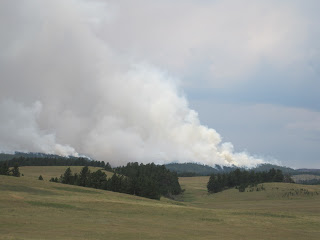 Meanwhile, the Myrtle Fire had started in Pringle, South Dakota and was only a few miles from Wind Cave National Park(Wind Cave is about 40 miles from Mount Rushmore). The Myrtle Fire has currently burned about 10,000 acres. They had to evacuate the area including the park and will be closed until further notice. Because the park has been evacuated, they began doing 24 hour patrols to make sure no one would be coming into the park that shouldn’t be there. As a way of helping out, they asked if we could assist with these patrols by sending one or two rangers to cover their day shift. Myself, Rangers Dave Woodcock, and Joe Turgyan patrolled on Sunday for a twelve hour shift. We were briefed in the morning on our duties and to inform us that they would be starting a back burn just outside the West boundary of the park. This back burn would help prevent the fire from moving into Wind Cave but would also make the fire look even bigger.