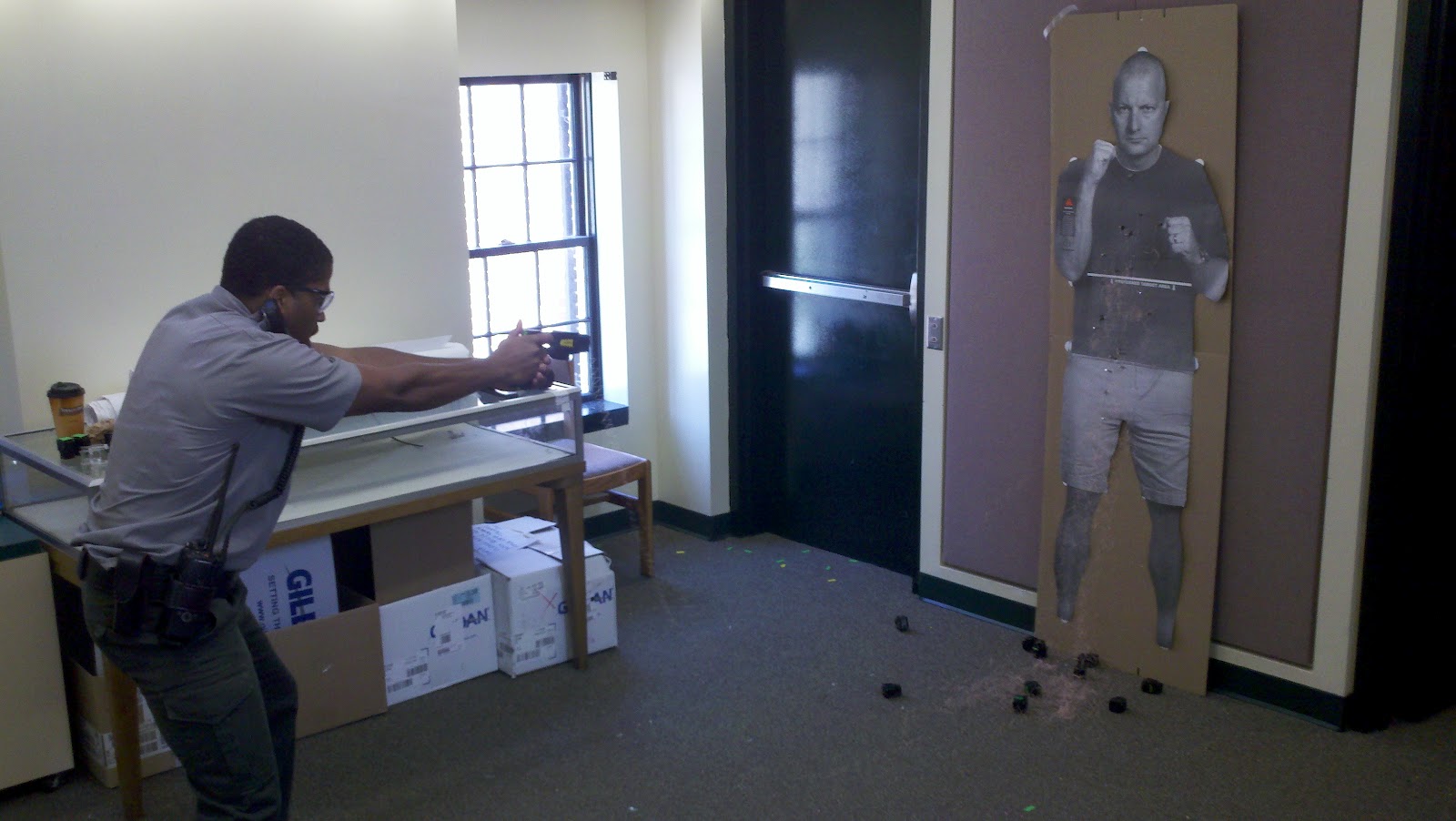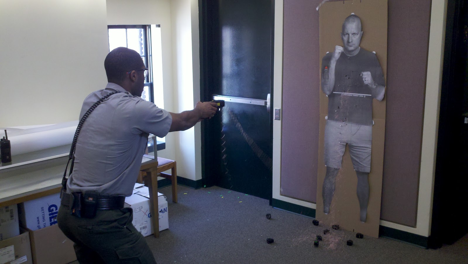 This week started off great, we worked with the LE Rangers from here and minuteman. We first assisted our supervisor with the decision on whether a vehicle should be towed, and we decided to tow it. The next day, we went to the range and participated in a mock shooting qualification test. Each of us did very well and we got an opportunity to fire some very cool weapons. On Friday, we were involved in a Bait Bike operation up at the Bunker Hill Monument. Wayne and I were a part of the surveillance team positioned on the roof, while other rangers were on the grounds around the monument waiting on bikes to apprehend anyone who attempted to steal the bait bike. It took an abundance of patience. Patience that paid off a half hour before the shift ended, and someone attempted to take the bike. The rangers on the ground were alerted by our supervisor who was also on the roof with us providing surveillance, and the arrest was made. Upon the arrest being made, we concluded the operation by taking the bike, surveillance materials, and the suspect back to the ranger station for the suspect to take part in the booking process. We topped our week by taking working a night shift in Minuteman National Historical Park; a park that traditionally does not have law-enforcement rangers on after 6 pm. While there, the rangers Mark and I were stationed to, did an abundance of traffic stops in the park, one of which involved an individual driving over 60 miles per hour in a 40 mph zone. Mark and another ranger were also attacked by a swarm of white faced hornets while in their motor vehicle and Mark was stung during the chaos.