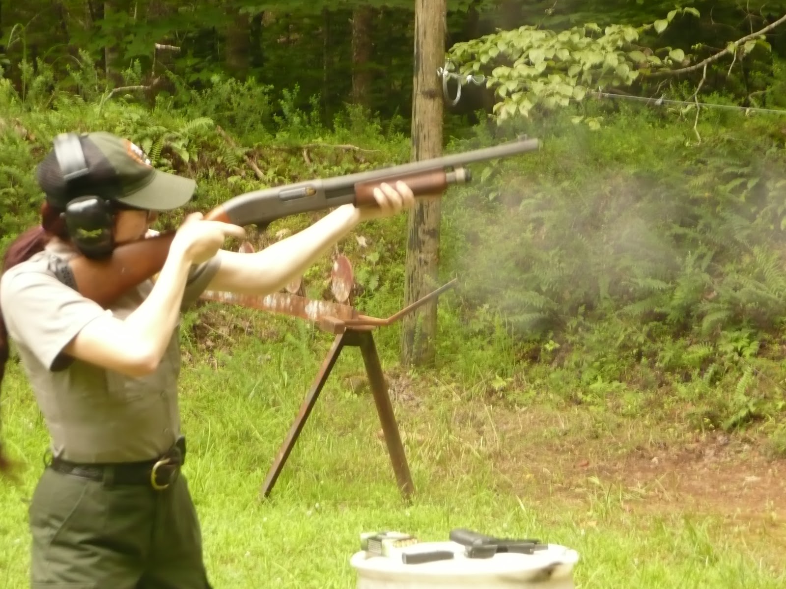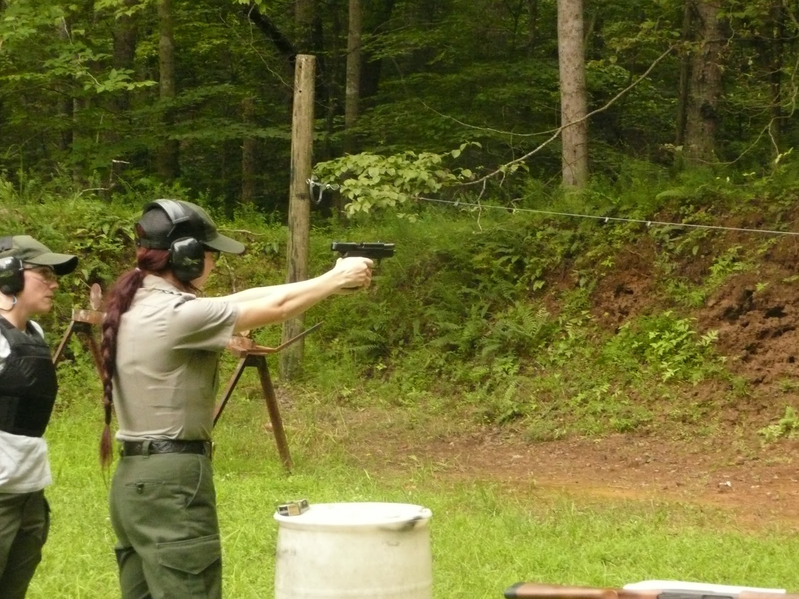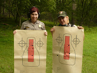 The next day we went to Prince William National Forest Park for some firearms training! After a whole summer of taking apart and putting together the firearms, as well as loading and unloading, we felt comfortable with the firearms and ready to shoot. We shot many rounds with the handgun, including with our weak hand and one handed. We also were able to shoot the shotgun a few times with buck shots and slugs. Chief Ranger Cindy Sirk-Fear of PRWI instructed us through the target practice, while Ranger David Ballam and Mark Howard reviewed proper shooting stances with us while we waited for our turn to shoot. Renee and I were proud of our targets at the end of the practice.