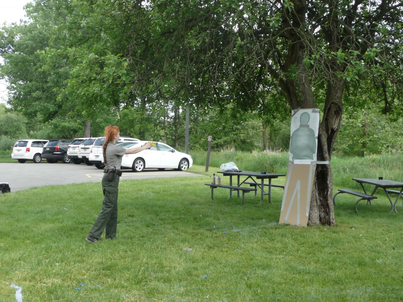 The following day, 6/1 I met with Ranger Mary Dyer. We went over PEB standards and the fitness logs that Cuyahoga has as well as a nutritious diet. After that we went on patrol and checked fishing licenses and as we pulled into one of the trailheads we were flagged down by some visitors who had dropped their keys in the marsh! After a little bit of tricky maneuvering we were able to get their car unlocked (which had extra keys inside!) and the visitors were happily on their way. After that I met with Ranger Cindy Swaggard. Being the firearms coordinator we went over the firearms at the park, the procedure each Ranger does when starting and ending their shift with the firearms, amount of extra ammunition each Ranger carries, what constitutes when to use deadly force, and many other factors that need to be considered. We also went over the procedures for qualifying annually, or here, biannually at the gun range. After that I went down to Brandywine to help with a parking detail for a wedding.