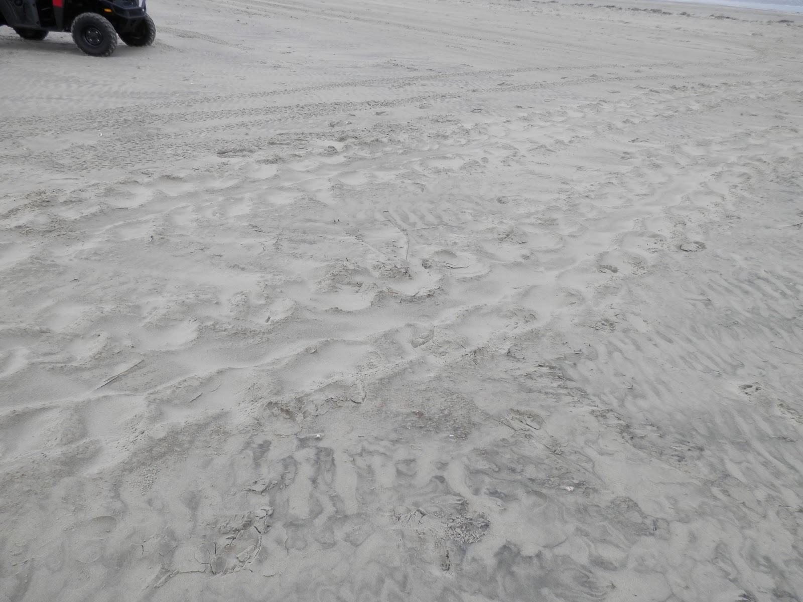 After clearing our previous call, Ranger Krebs and I responded to the site of the damaged turtle nest and conducted an investigation. Since the enclosure was positioned on a soft area of the beach, we were able to identify footprints and other marks that were left by the violators. We traced these marks to a nearby housing development, where they were covered by other foot-traffic. Although we could not follow the footprints to a specific location, Ranger Krebs and I searched the area for a park sign that was taken from the turtle nest and talked to residents of the area. We informed the residents about the damaged nest, and asked them to contact us if they had any information about the crime.