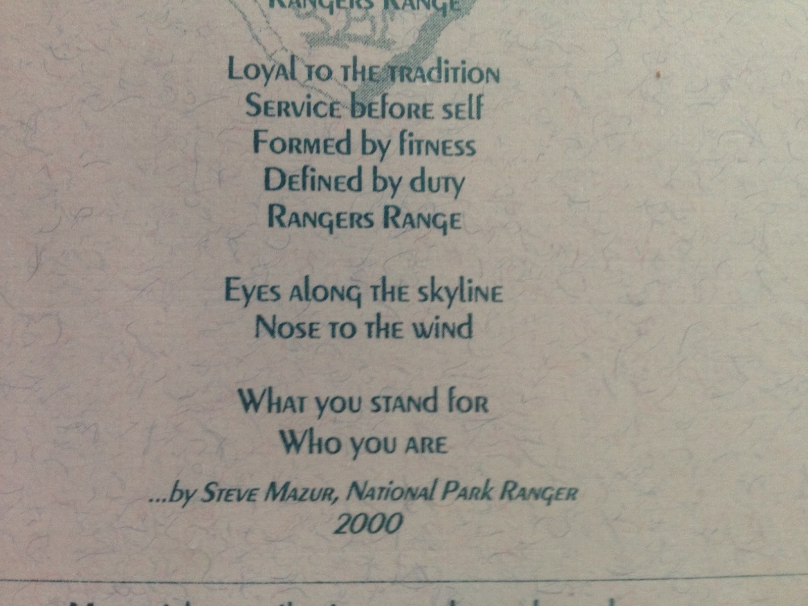 6/9: Today I did a ride-along with Ranger Pat Shad. We started the day early at 6 AM hoping to get some illegal camping cases in the morning. Sundays are popular days to find individuals who did not purchase a camping permit and decided to set up for the night somewhere in the park that is off limits to camping. We have two designated camping areas in the park, so we take illegal camping very seriously. This kind of camping can also disturb fragile dune environments and can run a fine upwards of $150. Despite our efforts, we did not find any campers though and proceeded to check on the smaller lakes in the park. It turned out to be a very quiet day and Ranger Shad and I had some great discussions in the car about being a Ranger and working at Sleeping Bear. We headed back to the station early because he had to catch up on some paperwork. While he did that, I found myself in the Kris Eggle Conference Room reading the large binder full of memorials and newspaper articles about Kris’ death (see my first blog to read more about Kris). It was truly an overwhelming collection and I’m glad that the park honors his memory in such a way. Kris was truly a great ranger and was taken way before his prime. His memory impacts the every day lives of the rangers here that knew him and even those who did not. We all can learn a lot from the character of Kris and how he loved being a ranger. Bellow is the ending of a poem that I found on the back of one of the funeral cards. From what I’ve read, it shows the kind of tradition and service that Kris represented in his work, and it is something that I will look to honor as well.